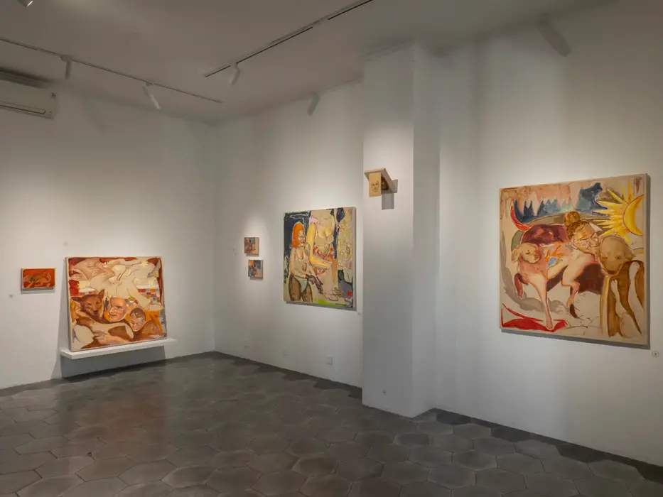 Deeply connected to the daily life of his generation, Pandu’s works reflect a fragmented rhythm influenced by the digital realm. The figures in these paintings appear to mirror memes—a digital cultural medium that compresses complex ideas into absurd, visually humorous forms.