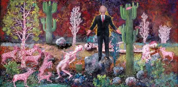 A 2019 Guggenheim Fellowship recipient, Wiharso has developed a distinctive use of glitter to create lush, detailed surfaces that draw viewers in while offering biting, humorous and poignant commentary. Double Horizon showcases Wiharso’s new series of works along with select works from the past three decades. The selection of works focuses on the duality of cultures and experiences in his two homelands - Indonesia andAmerica.