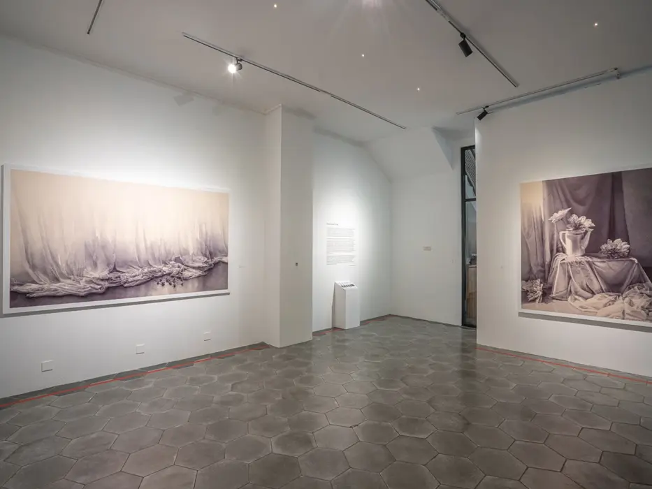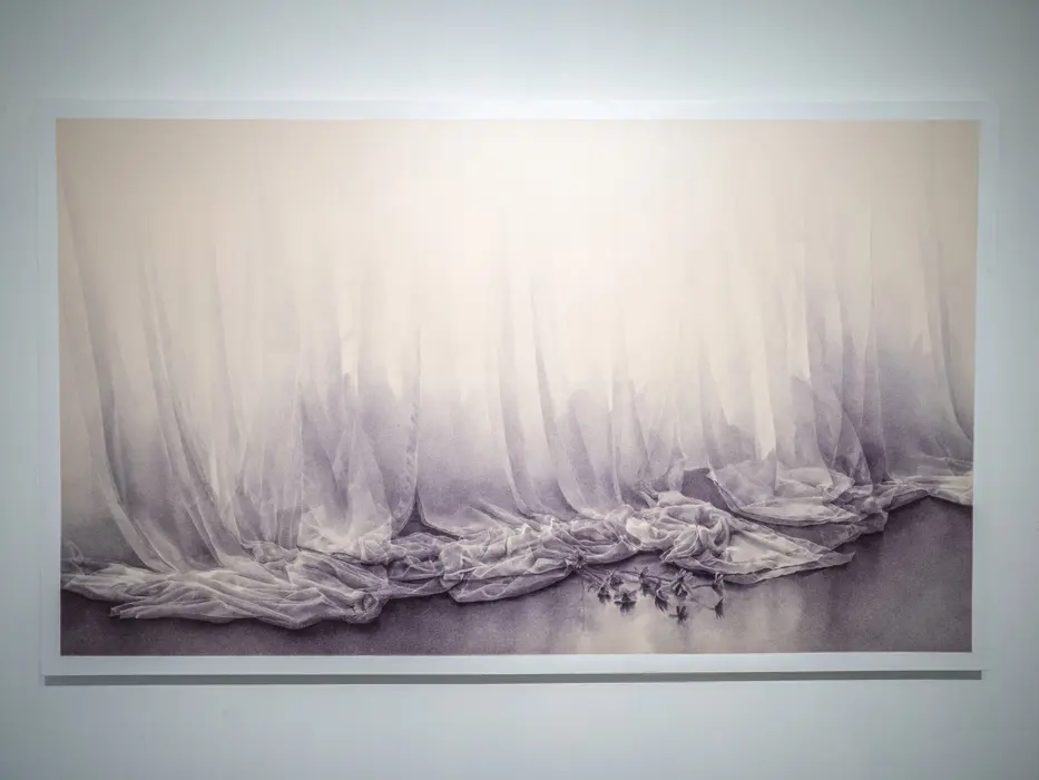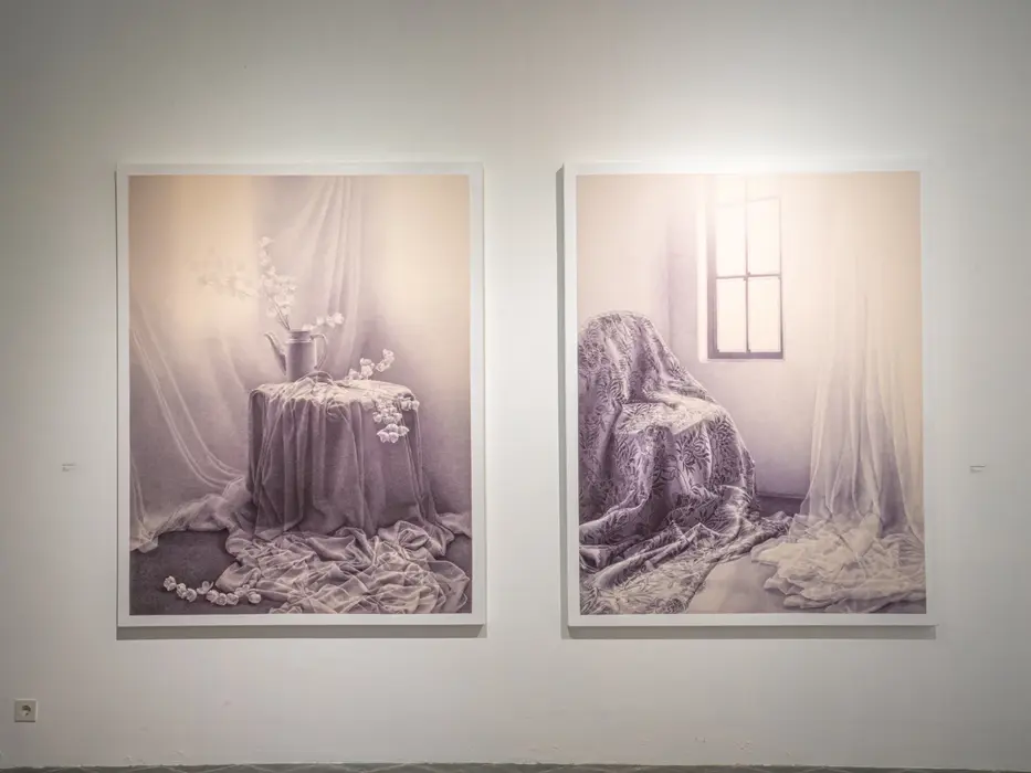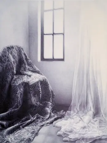 The shading makes Windi's painting translucent, like see-through on the canvas. This is what makes Windi’s artistic practice unusual. At fi rst glance, her works appear almost like black-and-white photographs with the objects that are present in her paintings. These objects have their own "aura" in Windi's works.